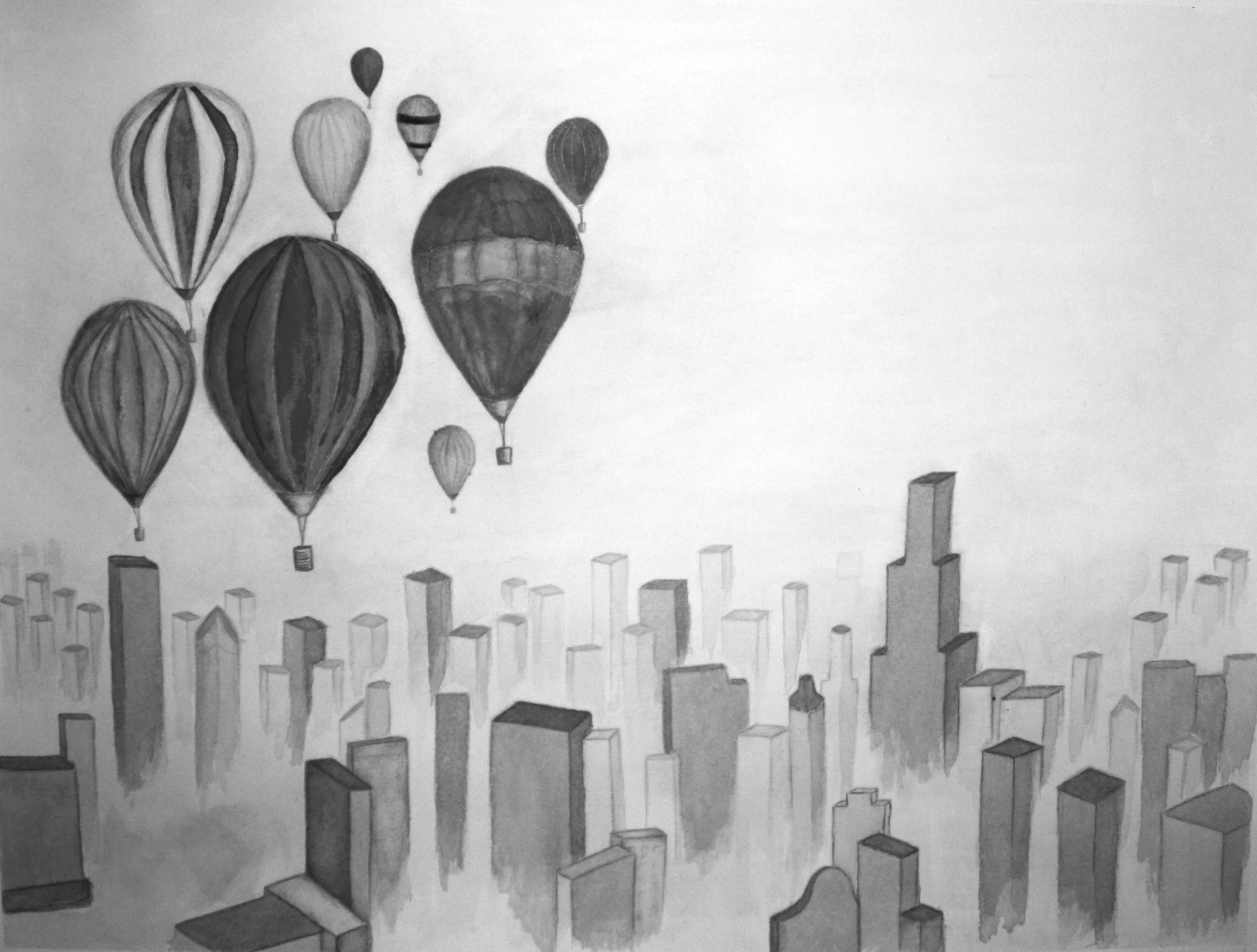 Balloons Over Chicago, Inkwash, 2011